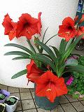 先日も紹介した「アマリリス」が今、満開です。一つの茎から4つの花が咲いていますが、よく見ると5つめの花が咲きそうな茎もありました。2鉢が昇降口に置いてありますが、ここ数年の中では、一度に花が咲きそろって見事です。
