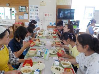 ふれあい給食2日目です。配膳を素早くすませ、「いただきます。」をしました。今日の一口メモは、豆腐についてでした。今日は久しぶりに晴れてきて暑いので、冷や奴がぴったりでした。1~6年生が楽しくおしゃべりしながら食べました。ある班では、修学旅行に行った6年生が「また鎌倉に行きたい」と言ったことから鎌倉の話になりました。