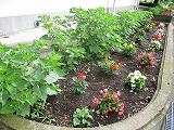 登校してくると、みんな農園や花壇の野菜を見に行きます。今日は、きゅうりを収穫ている子がいました。花壇の花やバケツ稲、アサガオなども成長しています。