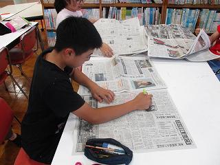 今日の6校時の6年生の理科の授業では、新聞を活用していました。「人や動物の体」という単元が終わり、発展の授業です。新聞を開いて、人や動物の体に関する記事を探しました。授業で学んだ内容を、新聞を通して生活に結びつけることができるようにしたいというねらいがあります。子供たちは、見出しの言葉や広告、健康のページから探していました。