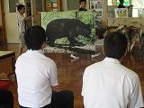 本校の児童は、ランドセルに「クマ鈴」を付けています。入学時に学校から渡しています。昔、学区内でクマが出たという話も聞きました。そこで、森林環境学習として、初めて県で行っている「クマレクチャー」を実施しました。クマについて映像資料や標本などの実物をたくさん見せていただきました。クマについて知らなかったことがいろいろわかり、クマに急にあったときにやってはいけないことやどうしたらよいのかなどを教えていただきました。人と動物がお互いに尊重して生きていくことの大切さなどを知り、貴重な学習となりました。ありがとうございました。