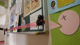 子供たちには、給食後に養護教諭から指導がありました。咳をするとウイルスが飛ぶことをその距離を示すテープを示して説明していました。テープの長さで、視覚的に捉えることができたので、周りの人のことを考えてマスクを着用する(咳エチケット)ことが大切だと理解できたと思います。