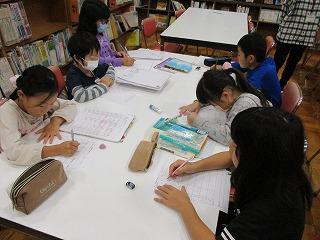 金曜日の朝は、自主学習の計画なので、図書室に集まって来て、カードに目当てや内容を書き込んでいました。今日は風邪で欠席が多かったので、休日の過ごし方も指導しました。図書室には、お薦めの本の紹介が掲示してありました。読書の秋なので、たくさん本を読んでほしいと思います。