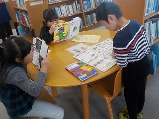 木曜日は図書支援の先生が来校する日です。21日は、図書室で、高学年と低学年が図書クイズにチャレンジしていました。
