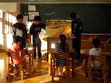 1・2年生は「おもちゃ大会」をしました。3・4年生は合同で音楽、3年生は社会科、4年生は本校で取り組んでいる「NIE」も取り入れた授業でした。5・6年生は体育館でタグラグビーをやりました。お世話になり、ありがとうございました。