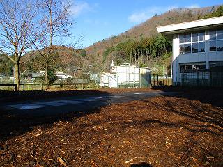 先週、南摩ダムの工事現場から、伐採した木材のチップをいただいて、トラックで運んで来ました。防草効果があるということなので、体育館と校舎の間のみどりん広場付近に敷き詰めました。関係機関の皆様と御協力いただいた皆様には大変お世話になりました。