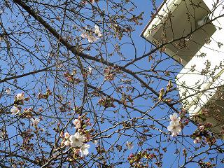 昨日の雪は消え、桜がほぼ満開です。子供たちに見てもらいたいと思っていますが、春休み中なので残念です。ランチルーム付近の桜と校庭の桜がひっそりと美しく咲いています。ホームページからお花見をしていただければと思って写真を撮ってきました。