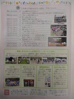 パンフレットの写真の部分と学校の歴史をA1サイズに拡大し、パネルにしました。卒業式の会場である体育館に設置しましたので、6年生はご覧ください。