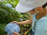 早速、校庭に咲いていた紫陽花を見つけ、「たくさんの花(がく)がついてる」「花が重くて垂れ下がっている」など、多くのことに気付くことができました。