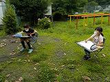 木の写生です。それぞれが描きたい木を選び、集中して描きました。