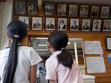 校長室に掲示してある歴代校長の写真や学校沿革の資料を丁寧に見とり、学習材料にしてました。