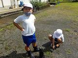 本日の1・2年生の図工で「どろんこ学習」を行いました