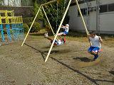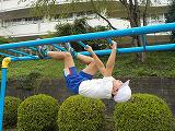 女の子たちはタイヤ跳び、男の子たちは雲梯です。