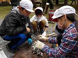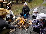長い杉板を6等分します。板の切り方、火のおこし方、杉板の焼き方・・・さまざまな課題を協力して進めます。途中、意見が分かれる時が一番の学習場面でした。