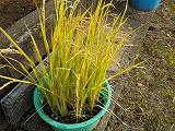 春に植えたバケツ苗は、稲穂がたわわに実っています。
