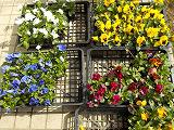 業間の時間に、3つの花壇にパンジーの花を植えました。