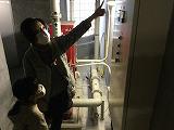 火災の際の通報のしくみや防災のための設備について、教頭先生にインタビューしました。日頃、児童は入れないポンプ室などに入り、火災に対する備えがしっかりできていることを知ることができました。