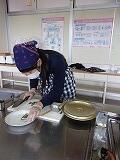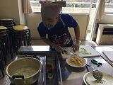 一人一台の調理台を使った個別調理です。必要に応じて手袋を使うなど安全管理を徹底しました。