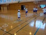 感染症対策を意識しながら、児童たちは広い体育館で身体全体を使って運動し、気持ちよく汗をかいていました。