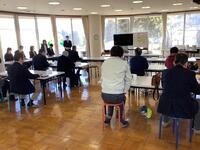 3・4年生が1・2年生に、卒業おめでとう会の概要や進め方を説明していました。