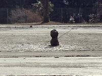 校庭にとけずに残っている、砂だるまです。