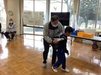 不審者侵入の避難訓練です。学校外で声をかけられたり、掴まれそうになった時の対処法を具体的に実演していただきました。