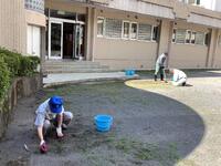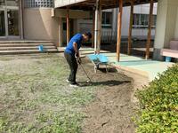 放課後や昼休み・業間等には教頭や事務主任・教員が校庭のならし作業や草刈り・除草を行なっています。