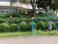 夏の間に一段と成長した雑草の除草や草刈り、植木の剪定を行いました。