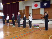 最初に新任式で、校長が新しく来られた先生を紹介して、お一人ずつお話をいただきました。