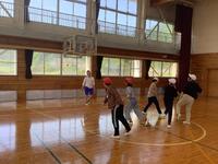 玉入れの紅白だまを使って、バスケットゴールに玉を入れる練習を行いました。