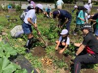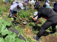 全校児童と職員で、学校菜園のジャガイモほりをしました。