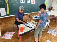 ボランティアの先生が、下野書道のお手本全員分を、名前入りで書いてくださいました。これも少人数ならではの成せる技のひとつです。やはり、実物大の手本を見ながらの練習は、とても効果的です。大きくなりがちな文字に気をつけながら、皆、真剣に練習していました。