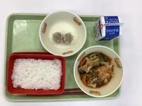 今日の給食は、いわしごまみそ煮、五目きんぴら、小松菜と油揚げのみそ汁、ご飯です。どのおかずも白米と相性ピッタリで、美味しかったです。お米の美味しさやありがたさを痛感する今日この頃です。