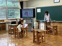 3年国語は、授業のはじめに新出漢字を学習していました。「遊」という文字です。よく使う漢字ですが、改めて漢字の部分を見てみると、最初に覚えるのが難しい漢字だな、と思いながら見ていました。「『遊歩道』の『ゆう』ですね。遊歩道は、知っていますか?」漢字の読み書きと同時に、これからの生活で使いそうな単語や構文と関連付けて覚えたり、語彙を増やしたりするのも国語の大切な学習です。