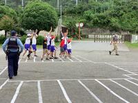次に、朝の登校班ごとの横断訓練を行いました。児童は普段の登校時に比べ、自分の目で左右を確認したり、車から自分の姿がよく見えるよう高く手を挙げたりと、考えながら行動している様子がうかがえました。最後に、巡査部長様や交通指導員様、校長から「自分の命は自分で守る」「今日学んだことを、明日朝から実行しよう」という話がありました。