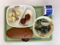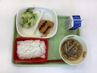 今日の給食は、ご飯、ごまあえ、じゃがいものみそ汁、そして【セレクト給食】で、ハムカツまたは白身魚フライのどちらか一つを事前に選んでありました。(写真はどちらも写っています。)情報によると、ハムカツと白身魚フライの割合は、ほぼ1対1の同数だったそうです。皆さんは、どちらがお好きですか。