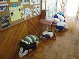 9月1日、防災の日、避難訓練を実施しました。清掃中に、学校付近に竜巻が発生して、清掃場所から避難するという訓練でした。子供たちは、各階・体育館の「たつまき避難場所」に素早く避難し、「だんご虫」になって、頭や首を守り、じっとしていました。竜巻が去って、状態が安定してきたという想定で、2次避難場所の一階の避難場所に全員集合し、人数を確認しました。全員無事に避難できたので、ランチルームに移動し、校長の話を聞き、消防署の方の話を聞きました。消防署の方は、テレビの映像や写真を見せながら、竜巻・水害・ミサイル等の場合の避難について分かりやすく説明してくださいました。子供たちには、「家での避難場所を家族の人と話し合っておきましょう。」という宿題が出されました。「想像することが防災の第一歩」なので、自分だけでなく家族で話合い、「もしも」に備える行動へつなげよう!とまとめをしました。
