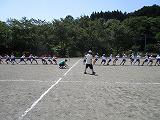 5日(火)は、朝から晴天でした。3校時の全体練習は、ラジオ体操・綱引き・台風の目の全体練習でした。一年生はどの種目も初めてですが、6年生にサポートしてもらいながら頑張っていました。途中で休憩して、水分補給をしました。終わった後は、5・6年生が片付けをしています。