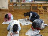 最後に、新聞を使ったゲームをしました。『「の」の字探しゲーム』といって、新聞紙の一面を選んで、「の」だけ見つけて赤丸をつけるゲームです。1年生も真剣にゲームに取り組んでいました。80個以上見つけた子がいました。「楽しかったから、家でも自主学習でやってみよう」と話した子もいて、嬉しくなりました。低学年の児童も、新聞には写真があったり、文字の大きさが違ったり、宣伝が載っていたりすることに気付いたようです。これから、新聞も積極的に活用して、子供たちの「言語活動の充実」につなげたいと思っています。