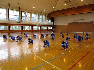 業間は、全校リレーの練習でしたが、急に雨が降ってきたので、体育館へ移動して応援の練習をしました。初めて全体で練習しました。応援団の団長さんが、1~4年生に応援の仕方を教えていました。