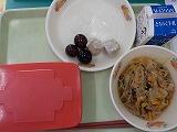 今日の給食の献立は、『ごはん 牛乳 マーボーはるさめ シュウマイ ぶどう』です
