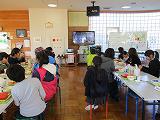 13日の給食後、ランチルームで録画番組を見ました。5年生が、社会科見学で鹿沼ケーブルテレビに行ったときに、学校紹介の番組を作ってきました。放送された番組を録画して、全校生で視聴しました。6人が上南摩小の紹介を分担して発表していました。植物図鑑の宣伝もしました。原稿を見ないで、はっきりと話すことができました。本物のアナウンサーのようでした!