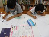 今日は、サマースクール2日目です。絵画・読書感想文・新聞スクラップづくりの3つに取り組みました。どんな絵にするか、下書きを書いてきたので、それをもとに、先生方にアドバイスをもらって、真剣に取り組んでいました。感想文の子供たちは、課題図書を読んできて、書き方を担当の先生から教えてもらって構想メモから取り組んでいました。新聞のスクラップを選んだ子は、コンクールの作品づくりに取り組みました。
