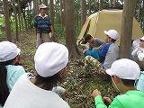 頂上では、テントを張って中に入ったり、「竜蓋山城」という山城の話、植物や鳥の話、安全の話を聞いたりして、様々な学習をしてきました。子供たちは、途中で、「山繭」やドングリを見つけて持ち帰りました。