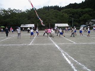 16日(土)に運動会が実施されました。台風による影響で、天候が心配されましたが、予定通りに実施できました。暑くなかったので熱中症の心配もなく全員元気に最後まで頑張っていました。子供たちは、ほとんどの種目に、全員で出場していました。子供たちが出ていないときは、保護者の綱引きや玉入れ、ドッジボール、来賓の福引きや地域の方との種目の時でした。保護者の方は子供たちが出ているときは準備や審判などの係の仕事をしてくださっていました。地域の方々も種目に参加しながら最後までご声援くださり、子供たちも励まされたことと思います。