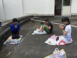 1・2年生たちは校庭の桜の木の下で、3~6年生たちは屋上から校庭の緑がよく見える場所を選びました。