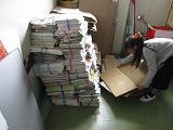 11月28日(火)の昼休みに、児童会活動として、雑誌や新聞紙、段ボール等の資源ゴミを業者のトラックに積み込む作業を行いました。今までに収集した物が体育館の更衣室いっぱいに置いてありました。それらを5・6年生が何度も往復して、トラックに積み込んでくれました。捨ててしまえばゴミとなってしまいますが、資源として再利用されるということを実感できたと思います。日曜日のリサイクルデーに続いての活動となりました。5・6年生の皆さん、学校のためにいつも一生懸命に働いてくれて、ありがとうございます。