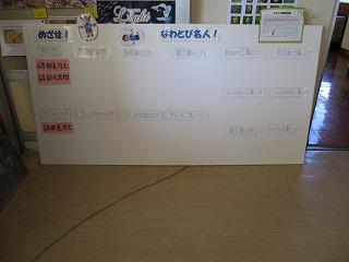 冬の体力づくりとして、なわとびを奨励しています。体育の授業だけでなく、休み時間にも練習している姿を見かけます。全員、「なわとび級別判定表」のカードを持っていて、自分の目標目指して練習しています。「名人」になると、昇降口の「なわとび名人」のボードに名前が貼られます。今のところ延べ3人の名前が貼られています。これから、多くの名人が誕生してほしいと思います。