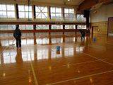 ワックスは、その後に先生方で塗りました。体育館をきれいにして、卒業式を迎える準備を着々と進めています。
