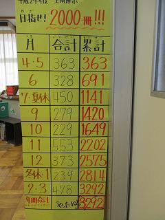 上南摩小学校の今年の読書の目標は、全校生で2000冊の本を読もうということでした。図書支援の先生が児童の読書カードを見て、集計した結果、3293冊に達していました。目標以上で先生たちは驚いています。これからも、様々な種類の本を読んで心を豊かにしてほしいと思います。